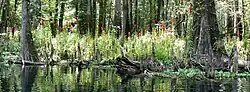 Sie gedeiht dort sowohl an den Ufern von Flüssen und Seen als auch in Sumpfgebieten.