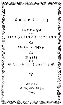- Ludwig Thuille: Lobetanz. Einen Bühnenspiel. Schott, Mainz 1900.