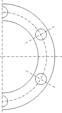 Ein Lochkranz kann auch sogenannte Langlöcher enthalten, die z. B. einen Winkel von 15° überstreichen und so von einer zur nächsten gedachten Bohrung reichen.