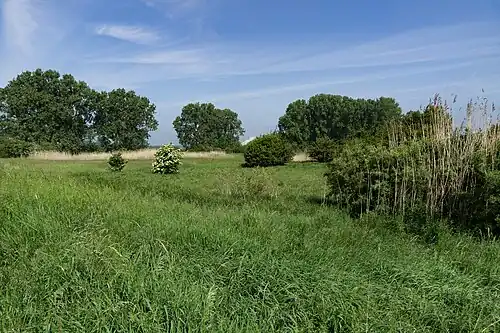 ![]() Naturschutzgebiet „Lochwiesen von Biblis“, im Hintergrund versteckt sich das AKW Biblis | ||