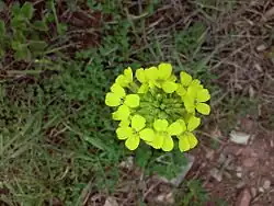 Die zwittrigen, vierzähligen Blüten weisen einen Durchmesser von 6 bis 8 Millimetern auf.[1] Die vier aufsteigenden Kelchblätter sind länglich mit einer Länge von 3 bis 4 Millimetern und einer Breite von 1 bis 1,5 Millimetern. Die vier gelben Kronblätter sind 6 bis 8 Millimeter lang und 2 bis 3 Millimeter breit, spatelförmig mit einem Nagel der mit einer Länge von 2,5 bis 3,5 Millimetern fast gleich lang wie die Kelchblätter ist. Die sechs Staubblätter bestehen aus einem 3 bis 4,5 Millimeter langen, aufrechten, gelblichen Staubfaden und einem 0,6 bis 1,5 Millimeter langen, länglichen bis eiförmigen Staubbeutel. Der unauffällige, gedrungene Griffel ist 0,3 bis 0,7 Millimeter lang und endet in einer deutlich zweilappigen Narbe. Jeder Fruchtknoten enthält 40 bis 60 Samenanlagen.
