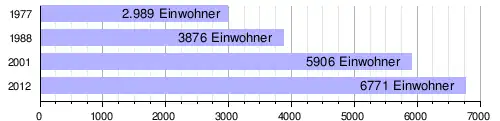 Das urbane Gemeindegebiet hatte bei der Volkszählung 2012 6771 Einwohner in 981 Haushalten,[1] bei der Volkszählung 2001 5906 in 805 Haushalten[7] und bei der Volkszählung 1988 3876 in 453 Haushalten.[8] Bei der Volkszählung 1977 waren es 2989 Einwohner.[9]