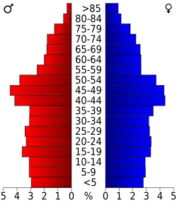 Auf das gesamte County bezogen setzte sich die Bevölkerung zusammen aus 22,1 Prozent Einwohnern unter 18 Jahren, 9,3 Prozent zwischen 18 und 24 Jahren, 28,0 Prozent zwischen 25 und 44 Jahren, 26,1 Prozent zwischen 45 und 64 Jahren und 14,5 Prozent waren 65 Jahre alt oder darüber. Das Durchschnittsalter betrug 39 Jahre. Auf 100 weibliche Personen kamen 94,2 männliche Personen. Auf 100 Frauen im Alter von 18 Jahren oder darüber kamen statistisch 91,0 Männer.
