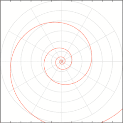 gilt, dann heißt die zugehörige Menge der Punkte (in Polarkoordinaten) eine logarithmische Spirale mit Steigung(-sparameter) .