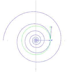 • Die Spirale umkreist den Ursprung unendlich oft, ohne ihn zu erreichen (asymptotischer Punkt).
