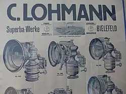 Die Ursprünge der Lohmann Werke AG gehen zurück auf die 1892 in London von Carl Lohmann (1853–1916) gegründete Firma C. Lohmann Cie. Carl Lohmann entstammte einer alten Bielefelder Unternehmerfamilie, die eine große Bleiche und eine Färberei im Stadtteil Gadderbaum betrieb.[1] Auf den Grundstücken entstanden später die Gebäude der Firma Dr. August Oetker KG. Die jüngste Tochter der Familie, Else Lohmann, war eine expressionistische Malerin.[2] Der Lohmann-Motor wurde später mit der Tochtergesellschaft Lohmann Motoren Werke mit Sitz in Hamburg vertrieben. Die Lohmann-AG profitierte von Zwangsarbeit im Nationalsozialismus.[3]