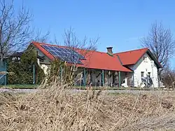 Aufnahmsgebäude im Bahnhof Ernstbrunn, rechts Personalwohnhaus -
