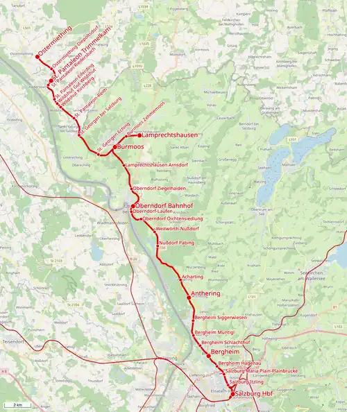 • Zielfahrplan 2023: Der Bahnhof Oberndorf wird modernisiert und der Bahnhof Bürmoos mit einer zweigleisigen Ausfahrt neu gebaut. Der Abschluss dieser Arbeiten soll zu Stoßzeiten einen 15-Minuten-Takt ermöglichen. Diese Maßnahmen wurden im Frühjahr 2023 bzw. am 20. Dezember 2023 abgeschlossen.[7]