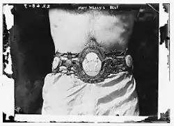 Die damaligen Gürtel bestanden noch aus 9- bis 22-karätigem Gold mit emailliertem Hauptschild auf der Vorderseite, auf dem sich ein Abbild zweier Boxer in einem Ring befand. Dieser Schild war unterhalb von einem vergoldeten Eichenblatt umrahmt. Zudem gab es vier weitere Schilder mit Abbildungen von Boxern. Der Gürtel selbst wurde durch ein Band in den Farben Rot, Weiß und Blau gebildet.