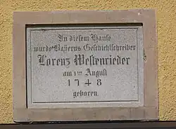 Nach Lorenz Westenrieder wurde am 21. Oktober 1848 in München im Stadtteil Graggenau (Stadtbezirk 1 – Altstadt-Lehel)⊙ die Westenriederstraße benannt.[5] In der Westenriederstraße steht auch das Geburtshaus Westenrieders. Am Haus der Hausnummer 21 weist eine Tafel darauf hin.