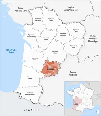 ![]() Lage des Départements Lot-et-Garonne in der Region Nouvelle-Aquitaine | |