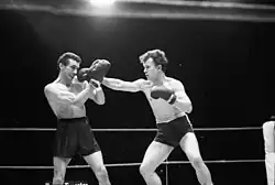 ![]() Lothar Abend (rechts) besiegt Jacques Cancelari in der Kieler Ostseehalle (1966)