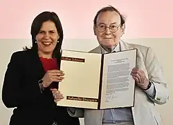 Bürgermeisterin Verena Dietl überreicht Lothar Schirmer den Kulturellen Ehrenpreis der Landeshauptstadt München