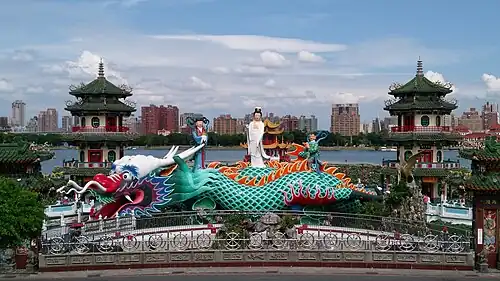 - Der nahe dem südwestlichen Seeufer gelegene Zuoying-Chenghuang-Tempel (左營城隍廟), offiziell Fengyi-Jiucheng-Chenghuang-Tempel (鳳邑舊城城隍廟), ist ein Tempel zu Ehren des Stadtgotts von Zuoying und hat seine Anfänge im Jahr 1704.