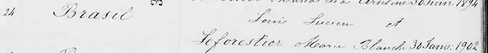 Geburtsurkunde Marie Louise Jeanne Leforestier später Brasil vom 10. Mai 1893 in Caen