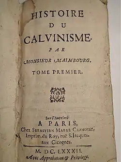 Maimbourg wurde ein Historiker, von dem Voltaire bedauerte, dass er zu sehr vernachlässigt worden sei, wohingegen Pierre Bayle seine Histoire du Calvinisme, zunächst unter Pseudonym veröffentlicht, scharf kritisierte.[1] Doch wurde der Name des Verfassers bald bekannt und seine Bücher ab 1683 in Frankreich verboten.[2]