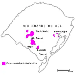 Chagas war der größte Grundbesitzer in Rio Grande do Sul, der südlichste Bundesstaat in Brasilien, mit Estancias in den Gemeinden São Gabriel, Santa Maria und Bagé. Insgesamt besaß er 500.000 Hektar (2 % der Gesamtfläche von Rio Grande do Sul).[2]