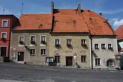 - Den langgezogenen Marktplatz (polnisch Rynek), der nach Westen hin ansteigt, säumen Bürgerhäuser vom 16. bis zum 19. Jahrhundert – im Süden mit Lauben. Inmitten des Rings finden sich zwei Häuserblöcke, in deren östlichem das Rathaus die Front einnimmt. Hinter dem Rathausbau verläuft ein kleines Gässchen mit Schwibbögen und an der Straßenecke findet sich eine Staupsäule. Den Rathausvorplatz (Niederring) nimmt die von vier Heiligenstatuen, darunter der des hl. Rochus, und einer Balustrade gesäumte barocke Mariensäule ein, eine Stiftung der Familie Tanner, die an eine Seuche von 1613 erinnert, die 989 Bürger dahingerafft haben soll.[2] Mit dem Maternusbrunnen von 1712, der den Bischof Maternus auf einer gewundenen Säule darstellt, findet sich zwischen beiden Ringblöcken (Oberring) ein weiteres barockes Denkmal. Dahinter steht das Leinenweberhaus – im Kern ein Renaissancebau des 16. Jahrhunderts (u. a. Fensterrahmen), in dem das Muzeum Kargula i Pawlaka untergebracht ist.