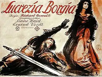 Lucrezia Borgia schmückt all die Intrigen, Gräuel und inzestuösen Begebenheiten im Florenz der Cesare-Borgia-Herrschaft drastisch aus. Oswald zeigt einen Kampf zwischen der Schönen (erneut von Liane Haid gespielt) und dem mächtigen Biest (das Conrad Veidt gibt). Die ohnmächtige Frau, die dies nicht länger sein will, ist dabei Objekt der Machenschaften ihres familiären Umfeldes. Aus dem kann sie sich schließlich nur noch befreien, indem sie den Kopf Cesares fordert. Oswald inszeniert dies in den auf dem Ufa-Freigelände in Berlin aufwändig nachgebauten Florenz, Pesaro oder Neapel. Er dirigiert Statistenheere und Schlachten. Dazwischen streut er kammerspielhafte Momente des Begehrens ein.[5]