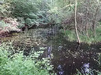 - Zwei Zuflüsse an einer Waldwegkreuzung (links und rechts)