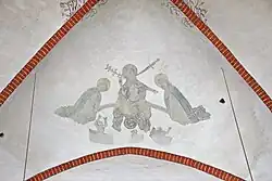 Im Inneren des Sakramentshauses sind vier Wandfresken erhalten, die aus der Zeit um 1500 stammen. Jede dieser Fresken zeigt einen Engel, der in der einen Hand eine brennende Kerze hält und mit der anderen Hand ein Weihrauchfass schwingt. So sollte die Verehrung der einst im Inneren aufbewahrten Hostien zum Ausdruck gebracht werden.[37]