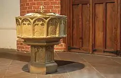 Der vermutlich aus dem frühen 14. Jahrhundert stammende Taufstein ist das älteste Ausstattungsstück der Ludgerikirche. Er wurde aus Bentheimer Sandstein geschaffen. Das runde Taufbecken ruht auf einem sechseckigen Schaft. Beide Teile sind mit Dreipassbögen verziert. Im Jahre 1957 erhielt das Taufbecken seinen heutigen Messingeinsatz und der Taufstein wurde an seinem gegenwärtigen Platz neben dem Hochaltar aufgestellt, nachdem er zuvor im Laufe der Jahrhunderte mehrfach seinen Standort gewechselt hatte.[43]