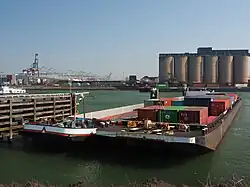 Bis in die späten 1980er Jahre wurde die Unternehmensflotte immer wieder durch neue Gütermotorschiffe modernisiert und ausgebaut. In den 1980er Jahren kamen auch einige Schubleichter hinzu, durch die die Transportkapazität der Flotte ohne Motorisierung erweitert wurde. Gleichzeitig baute man die Lagerplätze in Stuttgart und Mannheim zu Logistikzentren aus, um dort künftig nicht nur Baustoffe, sondern vor allem Container abfertigen zu können.[63] Das Umschlaglager in Mannheim umfasst drei Krananlagen bei einer Kailänge von 900 Metern.[64]