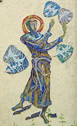 - Mosaik des hl. Franziskus an der Kindertagesstätte der Gemeinde Sancta Familia Frankfurt-Ginnheim (1957)