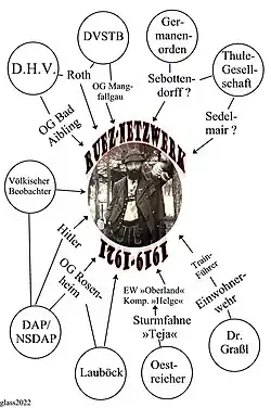- ↑ Ankündigungen und Berichte für die Versammlungen findet man öfter im Aiblinger Wochenblatt, in anderen Lokalblättern und gelegentlich auch im Völkischen Beobachter – z. B. StA Starnberg, Best. Land- und Seebote: älteste Heimatzeitung für d. Landkreis Starnberg u. d. Vierseen-Gebiet 45 (1920), Ausgabe v. 30. September.