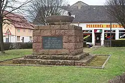 1956 wurde unweit der Kirche ein großer Kubus aus rotem Granit mit Feuerschale als Denkmal/Ehrenmal errichtet. Es trägt auf seiner östlichen Seite die Inschrift: „Die Opfer des 22. Februar 1945 und die Toten der zwei Weltkriege mahnen zum Frieden“.