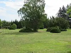 Zur Zeit der SBZ/DDR wurde am Rande der Begräbnisstätte ein großes Holzkreuz (mit schrägem Querbalken) errichtet, das die Inschrift trug: „Ihr seid gefallen als Helden, als Kämpfer, als Opfer gegen den Faschismus“. Das Kreuz wurde 1998 (mit gleicher Beschriftung) erneuert. Es existierte auch noch Anfang 2018, mit unleserlicher Inschrift. Anfang April 2018 war das Kreuz nicht mehr da (zur Restaurierung?).