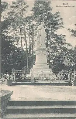 Von Alexander von Humboldt berichtete der Schriftsteller und Diplomat Karl August Varnhagen von Ense, er sei durch die heftige Luisenverehrung dazu veranlasst worden, sich negativ über Luises Charakter zu äußern.[43]Theodor Fontane schätzte „Reinheit, Glanz und schuldloses Dulden“ der Königin, lehnte aber entschieden ab, was offensichtlich nicht mit der historischen Wahrheit übereinstimmte. In den Wanderungen durch die Mark Brandenburg schrieb er 1862: „Mehr als von der Verleumdung ihrer Feinde hat Luise von der Phrasenhaftigkeit ihrer Verehrer zu leiden gehabt. Sie starb nicht am ‚Unglück ihres Vaterlandes‘, das sie freilich bitter genug empfand. Übertreibungen, die dem Einzelnen seine Gefühlsregungen zuschreiben wollen, reizen nur zum Widerspruch.“[44] Der marxistische Historiker und SozialdemokratFranz Mehring griff die Episode auf, in der vom Stein 1808 angesichts der Notlage der Bevölkerung in Ostpreußen von der kostspieligen Reise des Königspaares nach Sankt Petersburg abgeraten hatte. Mehring sah in der Reise ein typisches Beispiel für die soziale Verantwortungslosigkeit des Königshauses. Die Verehrung Luises nannte er einen „byzantinischen Schwindel“.[45]