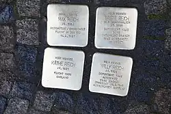 Seit März 2020 sind vor dem Haus mehrere Stolpersteine zu finden, die an die jüdischen Bewohner des Hauses in der Zeit des Nationalsozialismus erinnern.[2]