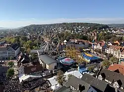 - Im Jahr 1911 standen auf dem Marktplatz sechzehn Geschäfte. Die Platzabgaben der Schausteller betrugen damals 2161,20 Mark. Im Jahr 2008 waren es 50 Geschäfte, davon elf Fahrgeschäfte. Die Schausteller zahlten in diesem Jahr etwa 125.000 Euro Standgebühren an die Stadt.[2]