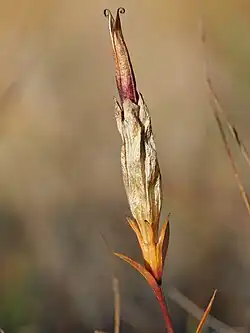 Die Kapselfrucht ist lang gestielt.[3] Die Samen sind bei einer Länge von etwa 1,5 Millimetern spindelförmig und ungeflügelt.[3]