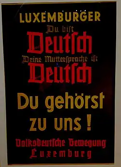 Eine Bewegung von Kollaborateuren ergab sich schon in den ersten Wochen der Besetzung, erhielt aber zu diesem Zeitpunkt keine Unterstützung durch die deutsche Militärverwaltung (von Mai bis Juli 1940). Am 19. Mai 1940 gab es ein Treffen von 28 Personenen, die zuvor den erwähnten rechten und faschistischen Gruppen angehörten, die Luxemburg zum Gau, also zu einem Teil des Deutschen Reichs machen wollten. Der Historiker Émile Krier stellte fest, dass die Volksdeutsche Bewegung Vorkriegsnetzwerke nutzte, als sie sich gründete. So war beispielsweise der Lehrer Damian Kratzenberg, der dann Chef des landesweiten VdB wurde, zuvor Chef der Luxemburger Gesellschaft für Deutsche Literatur und Kunst.[2]