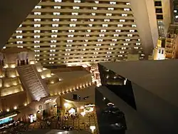 Der öffentliche Bereich des Hotels gliedert sich in die eigentliche Kasino-Ebene und die in Höhe des vierten Stockwerks darüber gelegene Unterhaltungsebene. Die Zugänge zu den Zimmern sind, abgesehen von den obersten drei Stockwerken, zur Innenseite des Hotels hin offen und nur durch eine Balustrade gesichert, so dass von dort das Geschehen auf der Unterhaltungsebene beobachtet werden kann. Andersherum ergibt sich durch die große Höhe auch auf der Unterhaltungsebene nahezu der Eindruck, im Freien zu sein, was auch in Form einer offenen, biergartenähnlich gestalteten Restaurantgruppe (primär für Fast Food) ausgenutzt wurde. Es gibt Einkaufsmöglichkeiten, Massagepraxen und zahlreiche Restaurants.