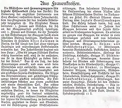 Die zuerst in Berlin gegründeten Mädchen- und Frauengruppen für soziale Hilfsarbeit unterstützten junge Mädchen und Frauen des gehobenen Bürgertums auf der Suche nach einer „sinnvollen Tätigkeit“.