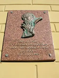 Am 2. Juli 1995 besuchte Papst Johannes Paul II. Prešov und betete gemeinsam mit dem evangelischen Bischof Ján Midriak vor diesem Denkmal. Zur Erinnerung daran wurde eine Plakette mit dem Bild des Papstes und einer Inschrift angebracht, die übersetzt lautet:
