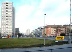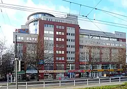 ist das Ring-Center II mit dem vorgesetzten Neubau der Galerie Kaufhof / Ring-Center III. Vor seiner Errichtung gab es Pläne, ein Hochhaus hier entstehen zu lassen.