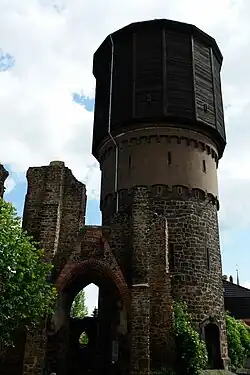 Im Westteil der alten Kirchenruine ließ die Stadt 1877 einen Wasserhochbehälter errichten. Dieser hatte ein Fassungsvermögen von ca. 1.000 m³. Die erhaltene Holzverkleidung des Oberteils des Wasserturmes besteht seit 1936. Die Wasseranlage wurde 1979 stillgelegt. Nach Jahren der Nichtnutzung erfolgte 2016/2017 eine umfangreiche Sicherung und Sanierung, bei der unter anderem auch ein Teil des Behälterbodens aufgetrennt wurde, um ihn über eine Treppe begeh- und somit nutzbar zu machen. Im Rahmen des Altstadtfestivals Wasser-Kunst-Licht wurde der Wasserturm vom 31. August 2018 bis 2. September 2018 erstmals wieder der Öffentlichkeit zugänglich.