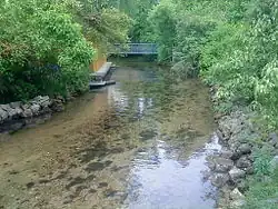 Der Mühlbach nach Austritt aus der Mühlbachquelle (Blick flussabwärts) | ||