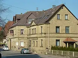 - Neben dem Rathaus und den Kirchen weisen zahlreiche weitere historische Gebäude im Ort schmuckvolle Sandsteinfassaden auf und stehen deswegen auch unter Denkmalschutz. Neben stattlichen villenartigen Wohnhäusern wie dem Haus Holtz in der Hauptstraße 6 sind hierbei auch die aufwändige Sandsteinausführung einfacherer Wohn- und Wirtschaftsgebäude bemerkenswert, z. B. die tempelartige Vorderfassade des örtlichen Wasserbehälters in griechisch-dorischem Stil oder der Erker mit gekuppelten Fenstern am Haus Bardenstein in der Brettachstraße 8.