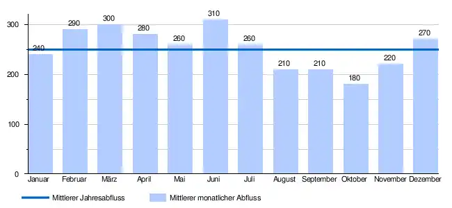 - ↑ Martin Pfaundler, Rolf Weingartner, Robert Diezig: „Versteckt hinter den Mittelwerten“ – die Variabilität des Abflussregimes. In: Hydrologie und Wasserbewirtschaftung (HyWa). Jg. 50, Heft 3, 2006, S. 116–123, hier Tabelle auf S. 119 (Download [PDF; 3,2 MB; abgerufen am 31. August 2020]). Abrufbar unter Gesamtes HyWa Heft 3, 2006..
