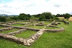 Aus der Zeit zwischen dem 2. und 3. Jahrhundert n. Chr. sind in Mülheim-Kärlich an der Jungenstraße im Stadtteil Depot Grundmauern einer römischen Villa rustica erhalten. Sie kamen 1983 bei der Bimsausbeute zu Tage und wurden 1995 bis zu einer Höhe von 80 cm restauriert. Auf diesen Mauern stand ein etwa 70 × 35 Meter großes Herrenhaus. Erkennbar ist noch der Badetrakt mit Fußbodenheizung (Hypokaustum) und Kaltwasserbecken dieses aufwendig gebauten Anwesens.[25]