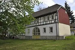 - Eines der bekanntesten Häuser des Ortes ist das ehemalige Freigut. Es gehörte im 18. Jahrhundert der landadeligen Familie von Tristan und wurde etwa 1760 durch die Familie von Hopffgarten übernommen. Diese nutzen das Gut fortan als Gasthof und ließen auch einen Tanzboden einbauen. In der Folge entstanden auch ein Brauhaus, eine Branntweinbrennerei und eine Malzdarre. Im Jahre 1953 verließen die letzten privaten Eigentümer das Dorf, 1958 wurde der Gebäudekomplex der Konsumgenossenschaft zur Nutzung übertragen. 1959 wurde der ehemalige Tanzsaal abgerissen, da er baufällig war. Durch Rückübertragung gelangte das Wirtshaus 1998 an die Alteigentümer zurück, doch eine dringend erforderliche Bauwerksanierung unterblieb. Schließlich drohte der Abriss des ortsbildprägenden Anwesens. Im August 2004 konnte die Gemeinde das Haus ankaufen und schuf hier, nach zweijähriger Sanierung, „Das Hainich Trachtenhaus“. Es beherbergt nun als kulturelle Sehenswürdigkeit eine einzigartige Sammlung heimischer Trachten.[6]