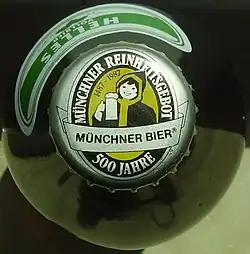 Der Begriff Münchner Bier mit der jeweils abgestellten Sorte ist eine seit 1998 geschützte geografische Angabe (g. g. A.) für bestimmte Biere, das innerhalb der Stadtgrenzen der Stadt München gebraut wird.[1] Es ist sozusagen die Produktbezeichnung. Münchner Bier mit der jeweils abgestellten Sorte wird insbesondere von den zum Verein Münchener Brauereien zusammengeschlossenen Brauereien Augustiner-Bräu, Hofbräu, Löwenbräu, Paulaner produziert. Außer diesen vier Brauereien (und deren Marken) kann aktuell nur noch die Brauerei Giesinger Münchner Bier nach g. g. A. produzieren.[2][3][4] Die Münchner Kindl Bräu hat mit Tiefbohrung nach Wasser begonnen, um künftig als sechste Münchner Brauerei zu gelten, welche diese Produktbezeichnung verwenden darf.[5]