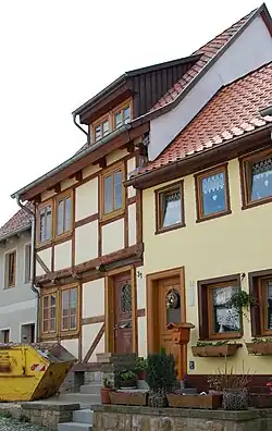 Das zweigeschossige Fachwerkhaus wurde in der Zeit um das Jahr 1700 errichtet. Die Fachwerkfassade des Hauses ist stärker verziert als es im Gebiet des Münzenbergs sonst üblich ist. So finden sich Pyramidenbalkenköpfe und profilierte Füllhölzer. Bedeckt ist das Gebäude von einem steilen Dach.