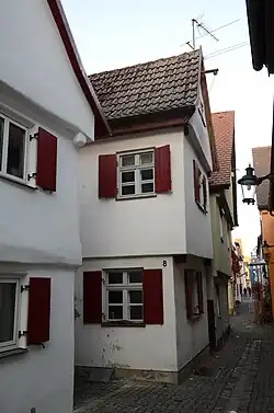 - Münzgasse 9: Wohnhaus, 17./18. Jahrhundert; an die Stadtmauer angebaut