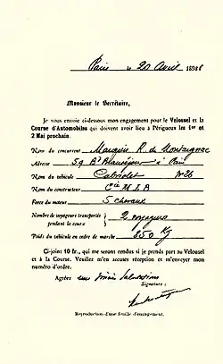 - ↑ Course d'Automobile de Périgueux. In: Raoul Vuillemot (Hrsg.): La locomotion automobile. Nr. 18. Paris 5. Mai 1898, S. 286.